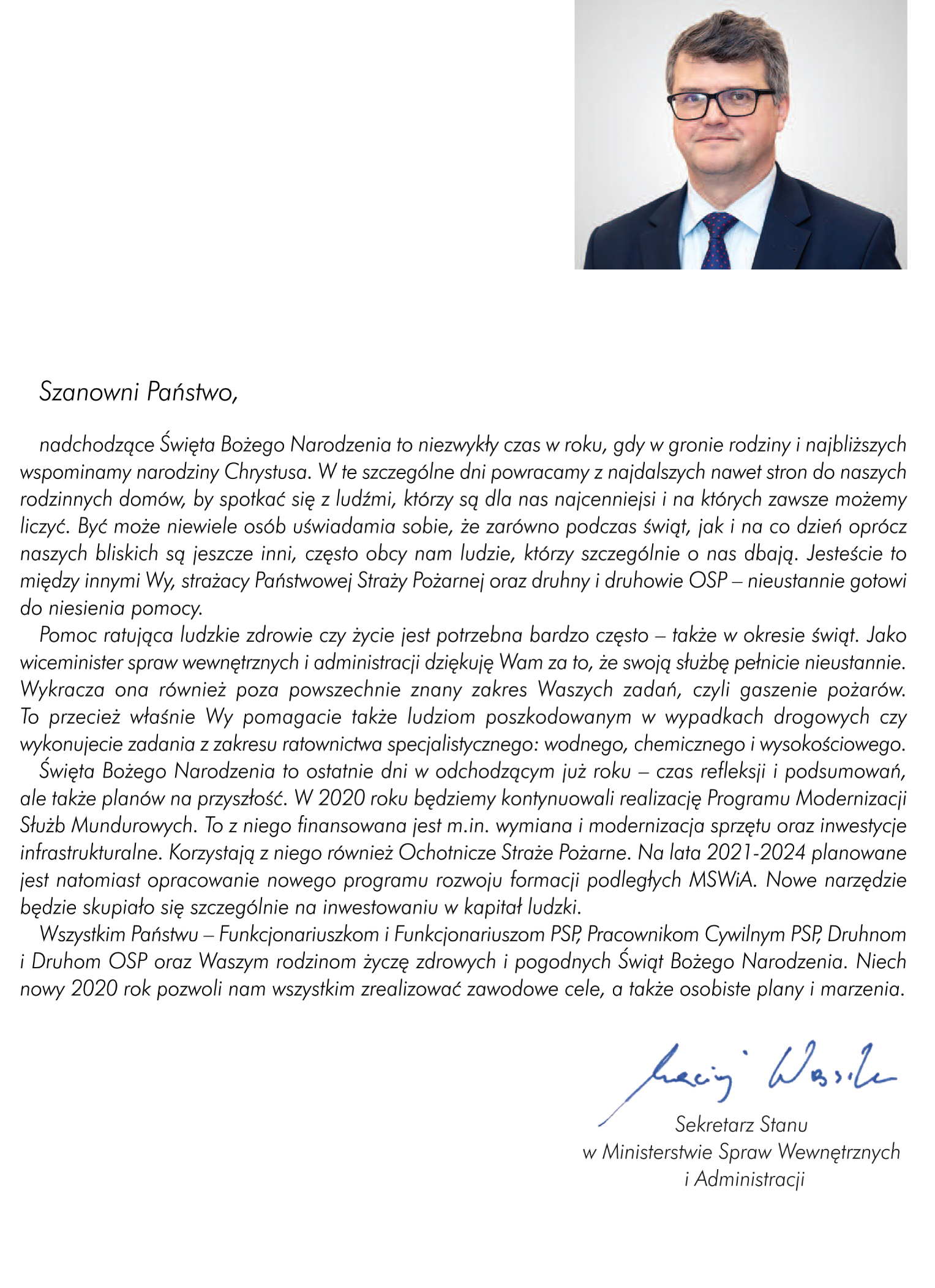 Aktualności, Bez kategorii, Komunikaty, Ważny news Życzenia świąteczno-noworoczne Sekretarza Stanu w Ministerstwie Spraw Wewnętrznych i Administracji 2019-12-24 Views: 1972