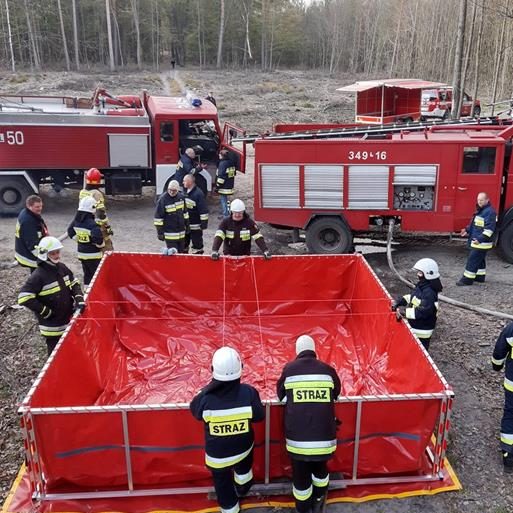 Po przybyciu na miejsce zdarzenia zastano pożar ściółki w lesie wraz z młodym drzewostanem. Działania w pierwszej fazie pożaru były skierowane na jak najszybsze ugaszenie płomieni przy pomocy tłumic, szpadli i łopat z uwagi na fakt, że pożar ulokowany był około 200 m od głównej drogi leśnej. Dokonano przecinki drzew w celu poszerzenia drogi dojazdowej do miejsca pożaru oraz zbudowano magistralę zasilającą z węży W-75 o łącznej długości około 800 m do pojazdów podających łącznie 6 prądów gaśniczych na pożar. Na magistrali pracowały dwa samochody ratowniczo-gaśnicze podbijające ciśnienie w układzie magistrali. Pozostałe pojazdy dowoziły wodę do bufora wodnego (zbiornik o pojemności 13 m3) i tankowały się z hydrantów w pobliskich miejscowościach.