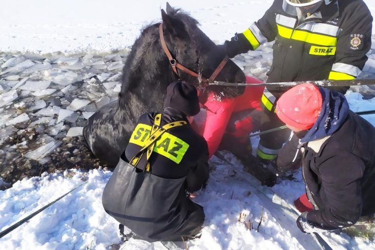 1 lutego 2021 roku Dyżurny Stanowiska Kierowania Komendanta Powiatowego PSP w Krasnymstawie otrzymał zgłoszenie o uwięzionym koniu w stawie.