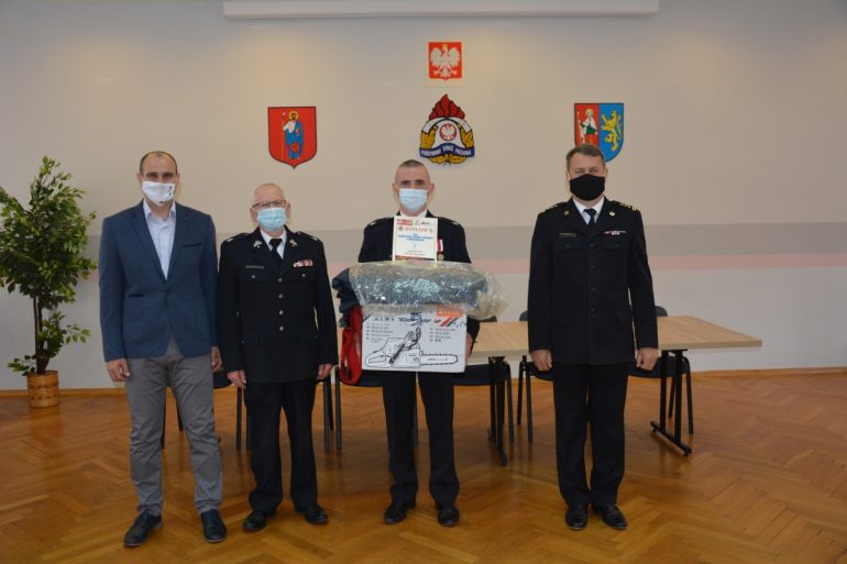 Nagrody rzeczowe za I miejsce: tj. pilarka spalinowa do drewna STIHL oraz ubranie bojowe ufundowały odpowiednio Arpapol 2 Sp. z o.o., z Lublina, Komenda Miejska PSP w Zamościu; za II miejsce: ubranie bojowe – Komenda Miejska PSP