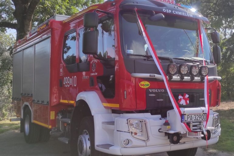 Nowy samochód strażaków OSP Chmielów zbudowany został na podwoziu VOLVO FLD3C, a zabudowę wykonała firma BOCAR. Samochód posiada zbiornik wody oraz środka pianotwórczego odpowiednio 4200 litrów / 430 litrów, bardzo wydajną dwuzakresowa pompę o wydajności 2900 dm3/min przy ciśnieniu 8 bar lub 377 dm3/min na wysokim ciśnieniu. Podwozie zapewnia napęd 4×4, więc może być wykorzystywany w trudnych warunkach terenowych, zabudowa pozwala na zabranie 6-osobowej załogi. Auto wyposażono m.in. w maszt oświetleniowy, wyciągarkę, zestaw hydrauliczny do ratownictwa drogowego, 4 aparaty powietrzne, agregat prądotwórczy i oddymiający oraz pilarki do drewna i piły do betonu i stali.
